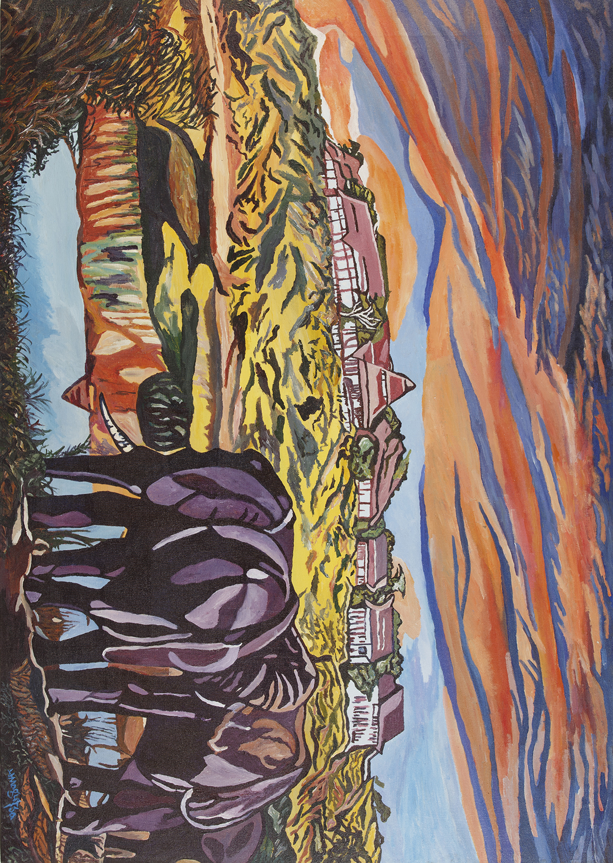 The scenic surroundings and farming activities formed part of my painting subjects. It was not easy for galleries to accept my painting style which I call , " A bridge between Realism and Abstraction ". Road side curio markets in Chinhoyi and Harare gave me the first exposure to sell my earliest artworks to tourists in 1995.
